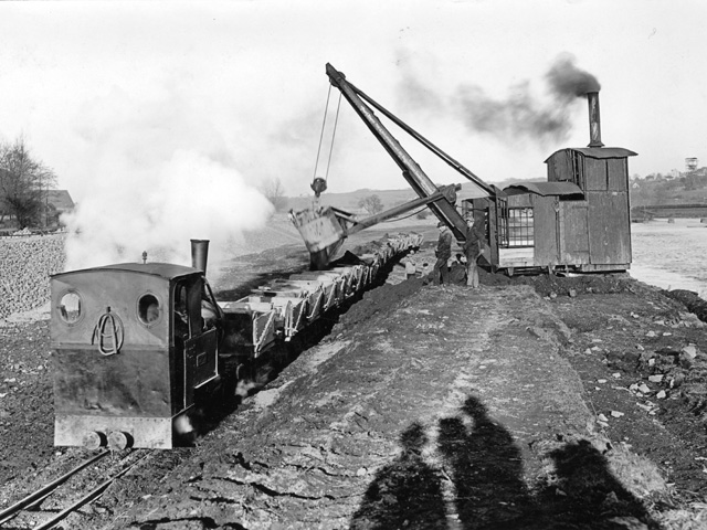Der Name Baldeneysee stammt daher, dass erste Planungen das Stauwehr in Höhe des Schlosses Baldeney im Ortsteil Baldeney vorsahen. Da sich dieses Vorhaben wegen zu geringen Gefälles und daher zu geringer Stromerzeugung als unwirtschaftlich herausstellte, entschied man sich, das Stauwehr weiter flussabwärts bei Werden zu errichten. Von dort erstreckt sich der Stausee heute bis zur Kampmannbrücke. Die ersten Arbeiten am See wurden in der Bevölkerung zunächst als ökologische Katastrophe gesehen, da sie ihr lieb gewonnenes Ruhrtal schwinden sah.[1] Zum Bau des Sees wurden Grundstücke von Krupp benötigt. Als Gustav Krupp von Bohlen und Halbach aber zugesichert bekam, dass man den See von seiner Villa Hügel aus werde sehen können, stimmte er dem Bau zu.